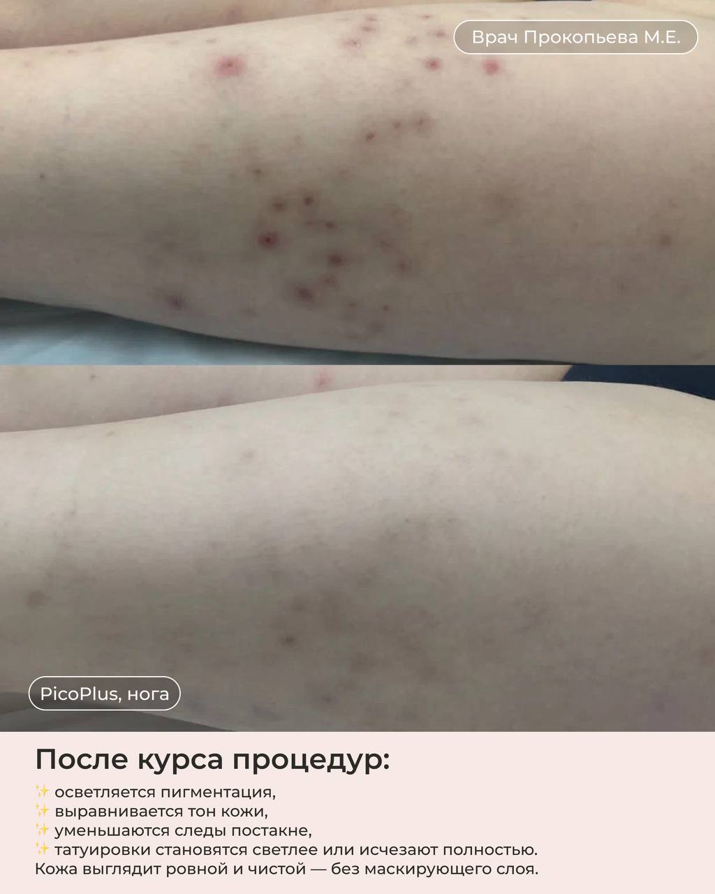 Всего несколько процедур, и пигментация осветляется, следы акне исчезают, а татуаж и татуировки бледнеют или стираются полностью!